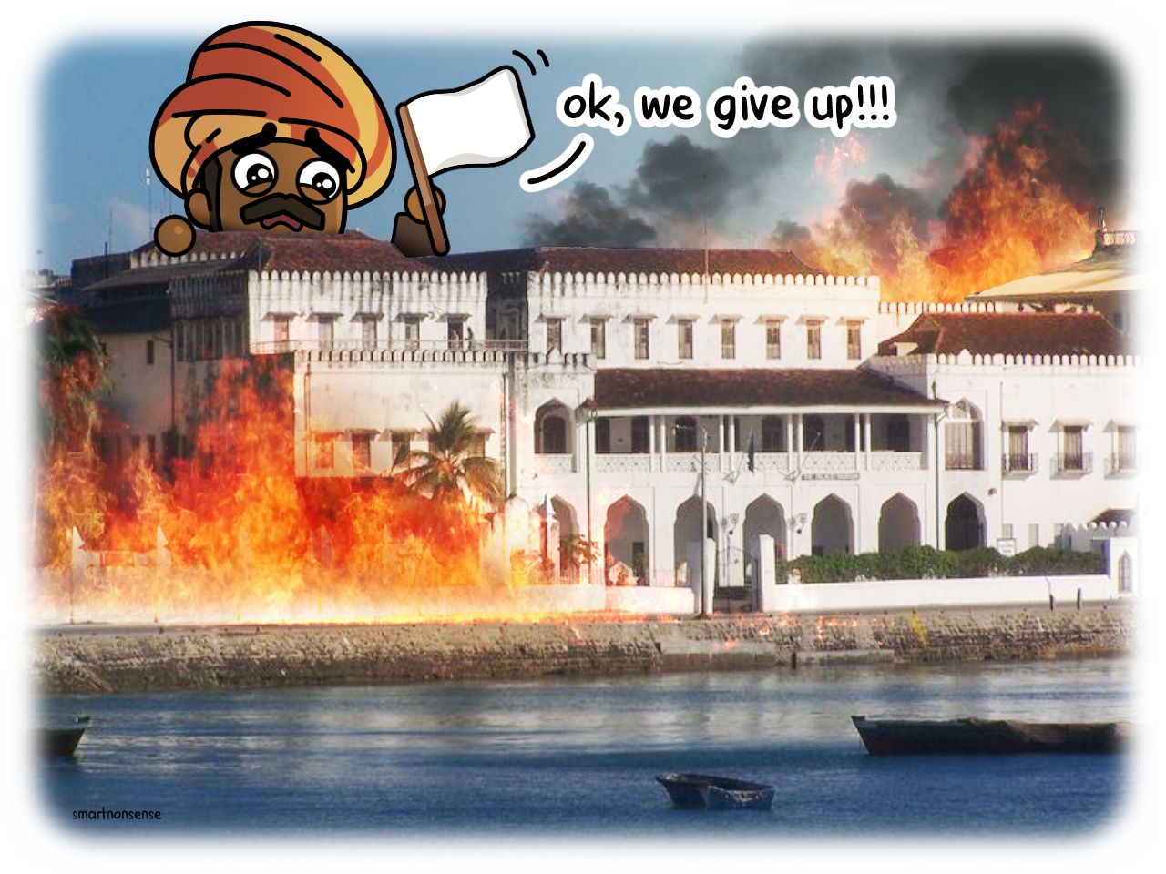 Then, when the clock struck 1 hour and the Zanzibari rebels hadnât given up the palace, the British OPENED FIRE!