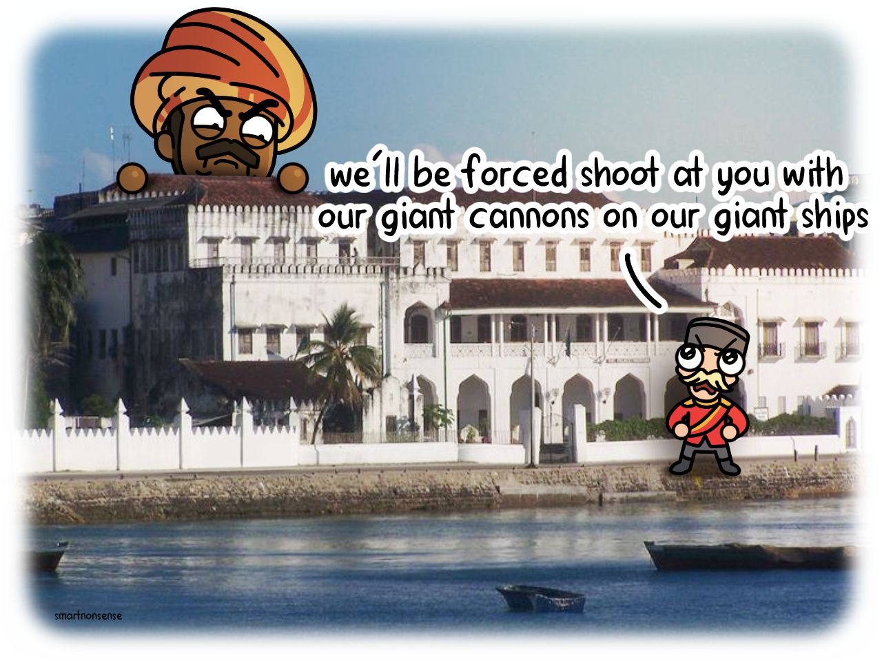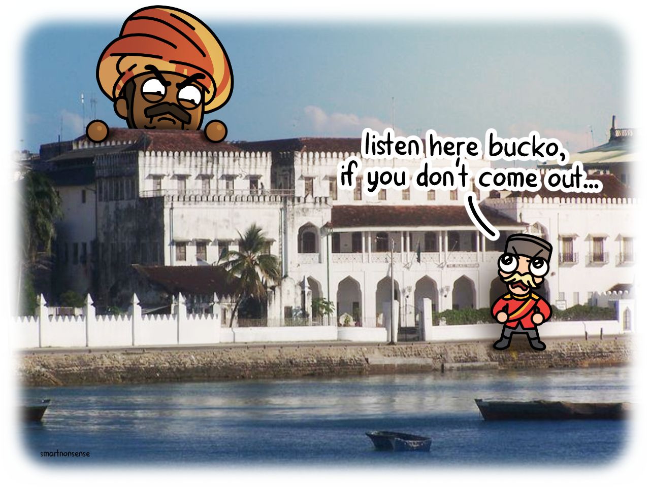 And after the sultan's death, his cousin Khalid (who REALLY wanted to be sultan and was incredibly ANTI-British) got together an army of 3,000 men and stormed the palace of Zanzibar.
