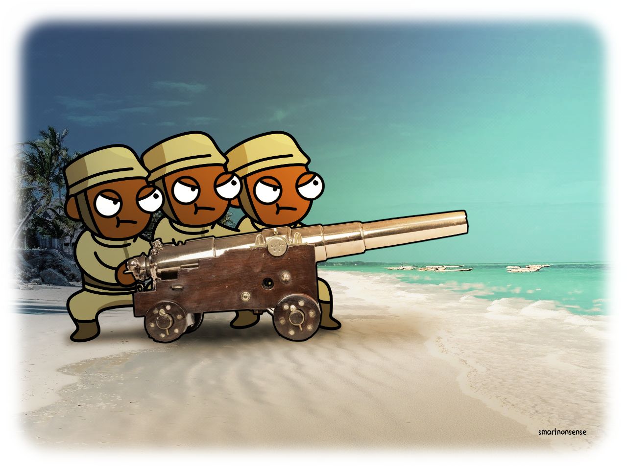 Their first few shots completely destroyed the Zanzibari rebelsâ cannon and ship.