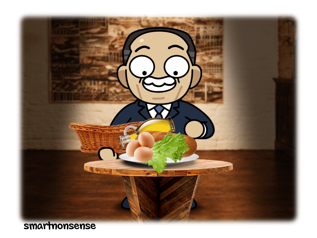 So Caesar takes the scraps left over and starts assembling something at the tables!
