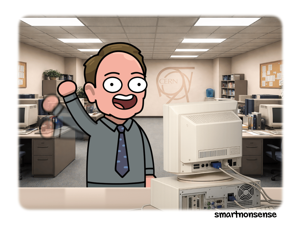 But once computers do exist in 1990, this dude Tim Berners-Lee: